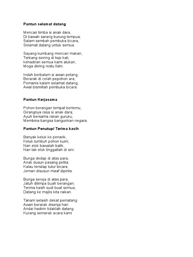Aneka Contoh Pantun Pilihan Mengikut Atur Cara Majlis - Perintis Reka