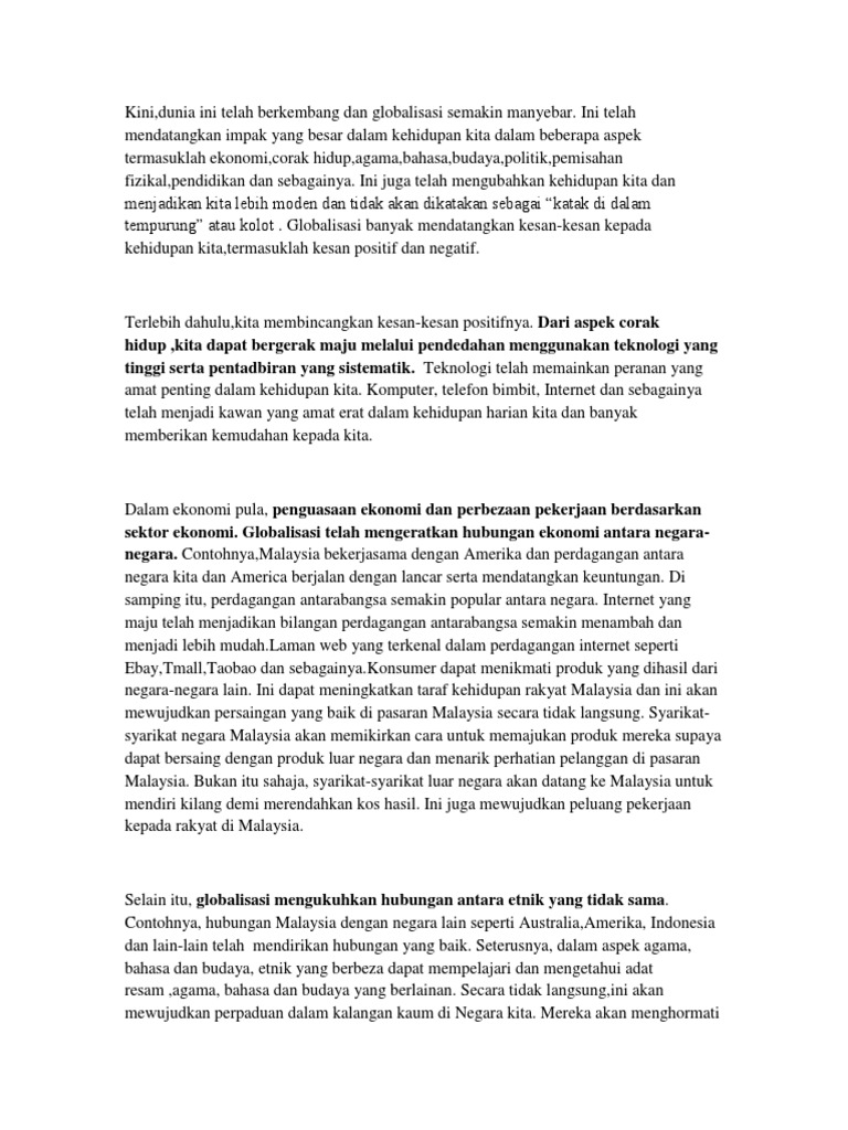 Apakah Impak Globalisasi Kepada Negara Kita Malaysia - englshgan
